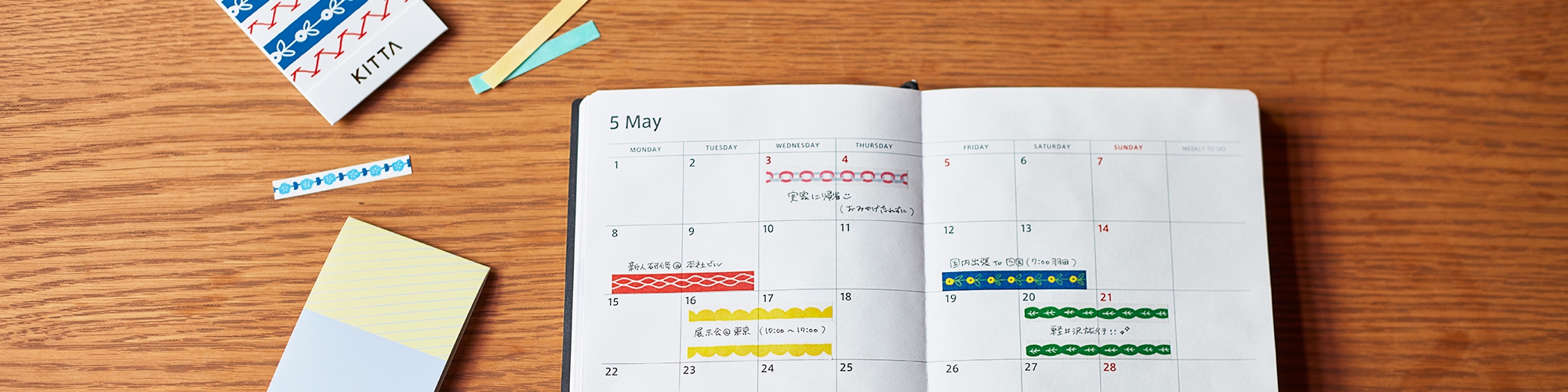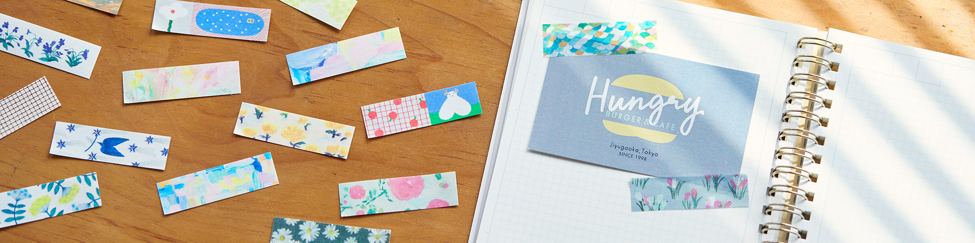 デコレーションの定番、15mm幅のマスキングテープ。写真やカードの貼りつけにぴったりなサイズです。