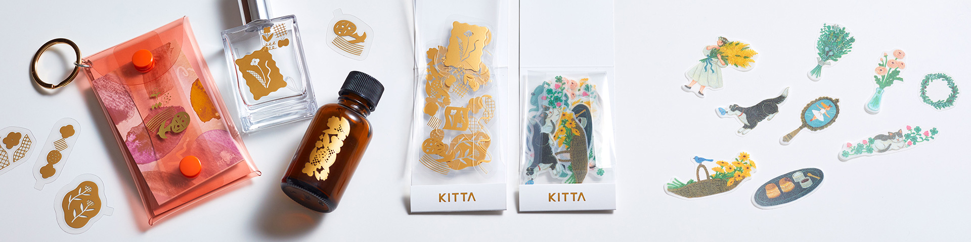重ねて貼ってコラージュできる透明の箔シールがセットになっています。