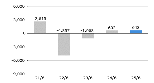 | フリーキャッシュ・フロー | 2,615 | △4,857 | △1,068 | 602 | 643 |