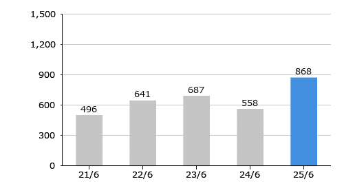 | 設備投資額 | 496 | 641 | 687 | 558 | 868 |