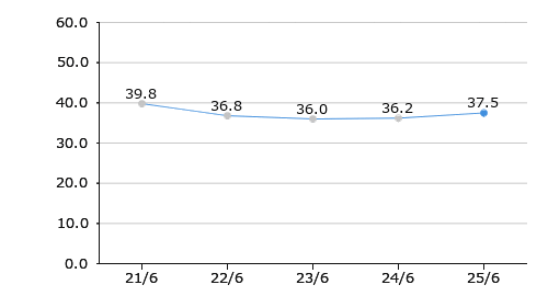 | 売上高総利益率 | 39.8 | 36.8 | 36.0 | 36.2 | 37.5 |