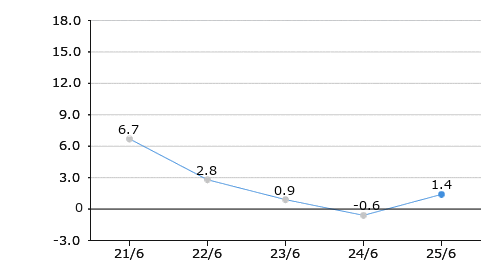 | 売上高営業利益率 | 6.7 | 2.8 | 0.9 | △0.6 | 1.4 |