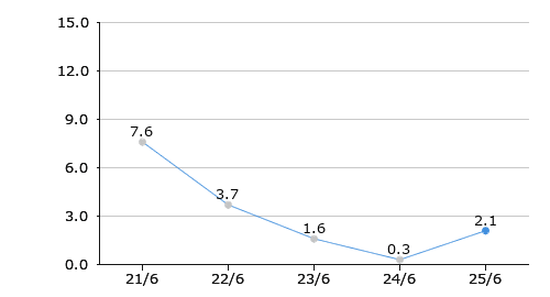 | 売上高経常利益率 | 7.6 | 3.7 | 1.6 | 0.3 | 2.1 |