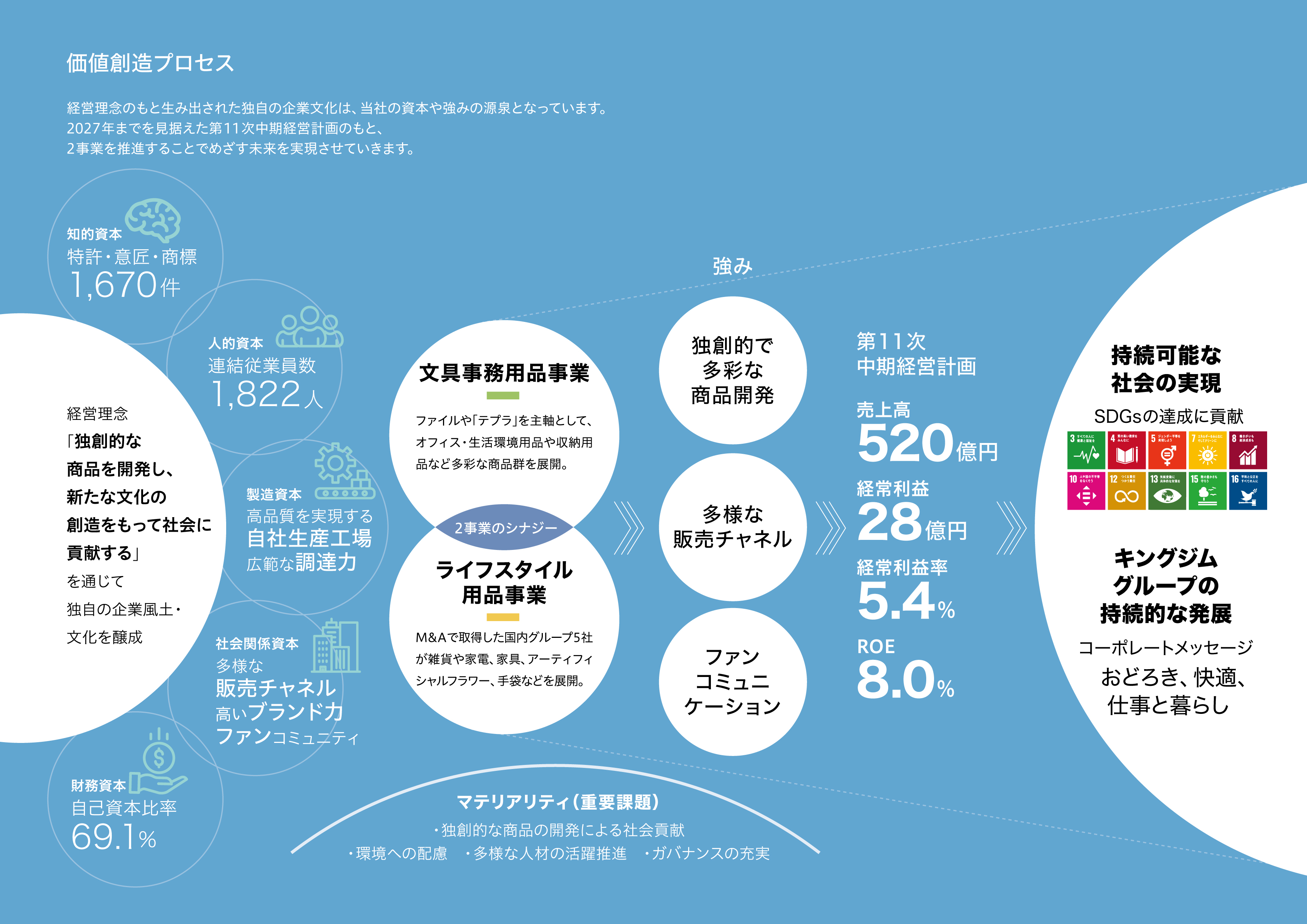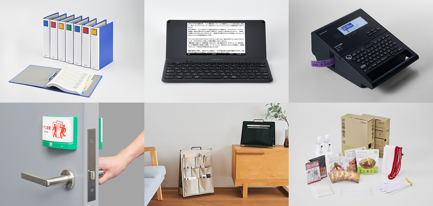 国内市場で圧倒的なシェアを誇る「キングファイル」やラベルライター「テプラ」を主力製品とし、デジタル文具、オフィス・生活環境用品、防災用品など、従来の文具・事務用品の枠を超えた多彩な商品群を展開しています。