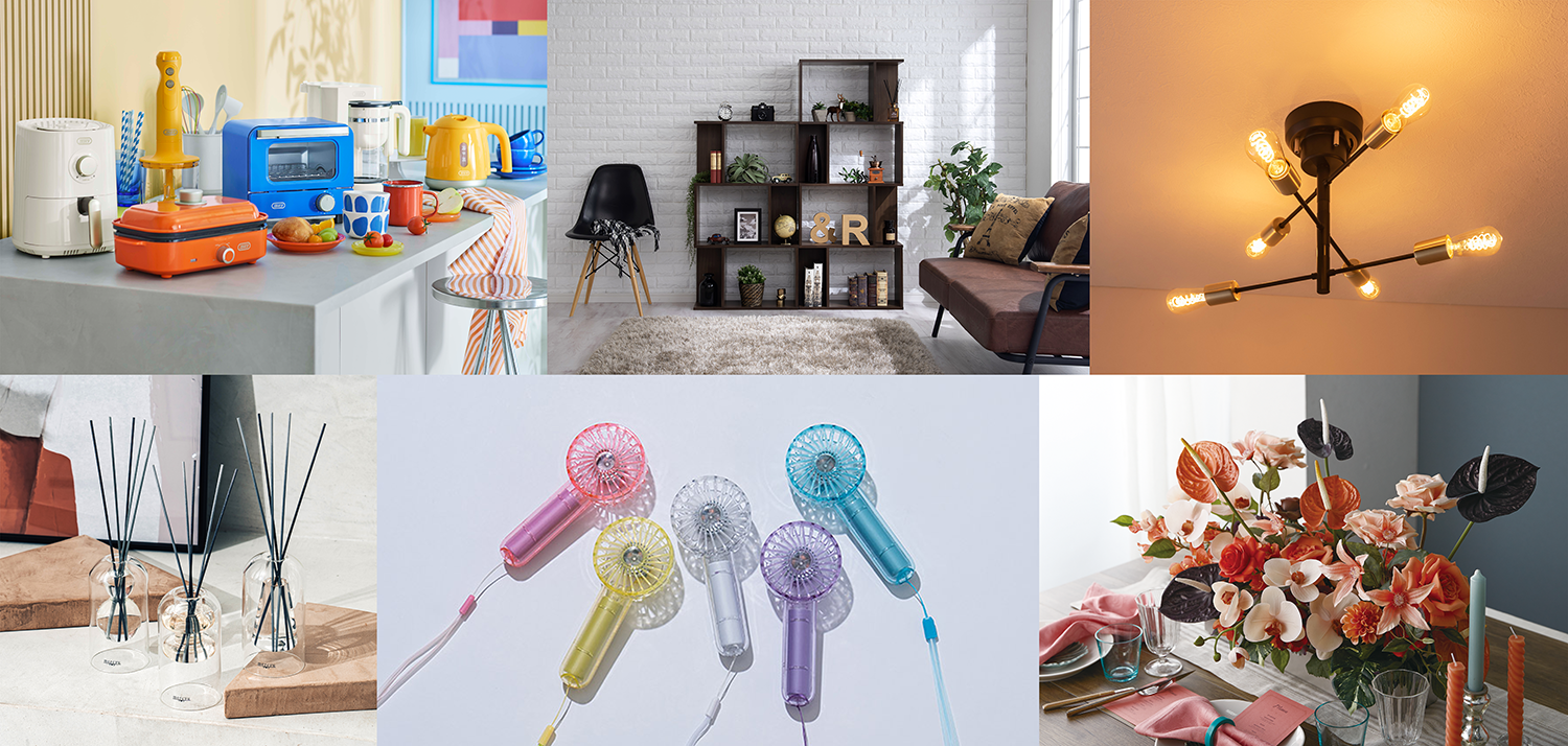 文具や事務用品に加え、ライフスタイル分野にも進出しています。雑貨や家電、家具、アーティフィシャルフラワー、手袋など、暮らしに彩りを添えるアイテムを、国内のグループ会社5社が企画・販売しています。
