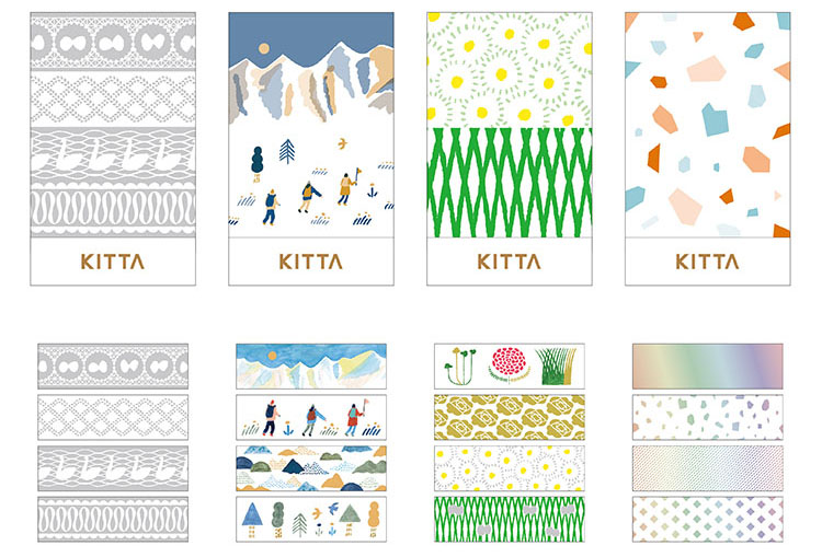 - 「KITTA CAN(キッタカン)」と同じデザインの「KITTA LIMITED(キッタリミテッド)」を数量限定で発売します。KITTA(キッタ)シリーズ初の「マットシルバー箔」「マット銅箔」「ゴールド&シルバー箔」「ホログラム箔」を使用した、特別なデザインです。