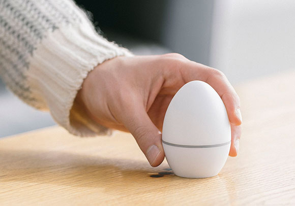 - 「エッグ」とスマートフォンはBluetoothで連携するため、複雑なWi-Fi設定等は必要なく、簡単に使用できます。また、電源は単3形アルカリ乾電池のため、設置場所を選びません。