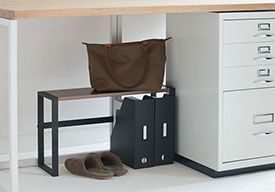 - 高さのあるハイタイプは、「デスクボード」の下にノートパソコンを置いて作業することが可能です。A4サイズのファイルが取り出しやすい高さなので、かさばるファイル類もスッキリ収納できます。また、デスクの下の収納などにも便利です。