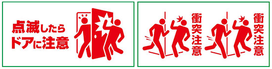 - 表示シートは「ドアに注意」シートと「衝突注意」シートの2種類で取り換えが可能です。