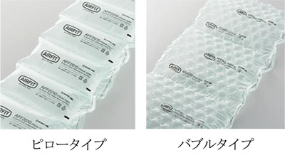 梱包の詰め物に適した「ピロータイプ」と、割れ物や精密機器を包みやすい「バブルタイプ」の2種類で、様々な用途に使用できます。