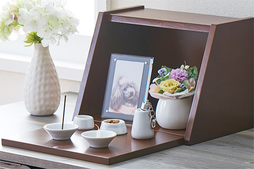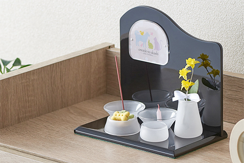 今回オープンするECショップ「おもいでの国」は、ペット専用の仏壇や仏具、遺骨カプセルやフォトフレームなどを販売する専門店です。コンパクトでありながら、どのようなインテリアや家具にも合わせやすいシンプルで温かみのあるデザインの商品を取り揃えているので、大切なペットとの思い出を常に身近に感じることができます。