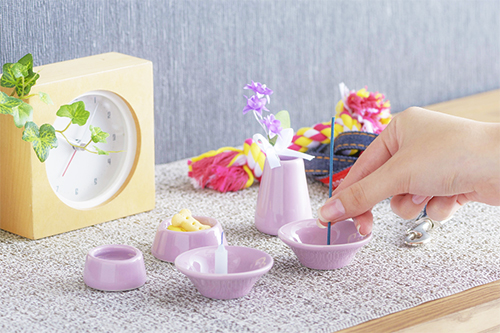 パステルカラーのシンプルな仏具セット。これ一つで、穏やかな祈りの空間が作れます。