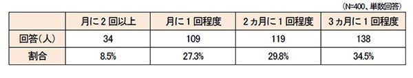 「文房具の購入の頻度」を聞いたところ、「月に1回程度」が27.3%、「月に2回以上」が8.5%と回答し、20代~40代の3人に1人以上が毎月文房具を購入していることが分かりました。