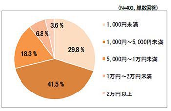- 1年間の文房具購入費は1,000円~5,000円が最多