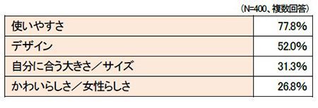 「文房具を購入する際、価格以外で重視するポイント」(複数回答)については、「使いやすさ」が77.8%、「デザイン」が52%でした。