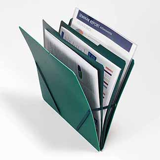 ゴムの伸縮で最適な厚さになるドキュメントホルダー、カードホルダー