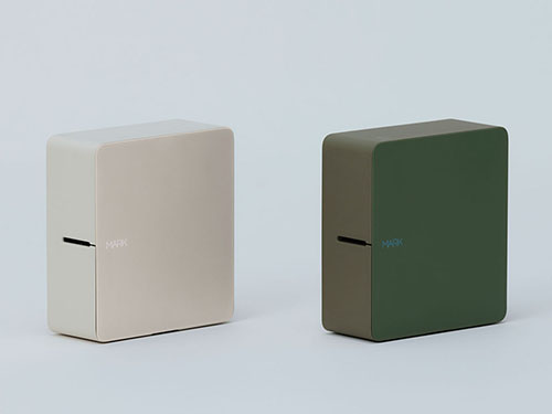 "MARK"は、iOS/Android の専用アプリ「Hello」とBluetooth®で接続してラベルを作成するスマートフォン専用の「テプラ」です。最大24mm幅のテープカートリッジが使用でき、「テプラ」最上位機種同等の高精細ヘッド(360dpi)で、繊細なデザインもきれいに印刷できます。本体デザインは、プロダクトデザイナーの柴田文江氏が手掛け、シンプルで細やかなディティールが際立つ形に仕上げました。本体カラーはベージュとカーキの2色展開で、インテリアに合わせてお選びいただけます。