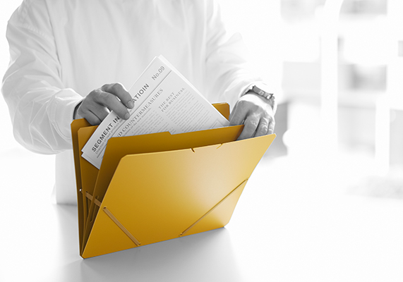 PPシートと平ゴムだけのシンプルな構造にも関わらず、これまでのホルダーよりも洗練度と機能性が格段に向上している。ゴムの特徴である伸縮性を利用して、嵩張る書類を常に適性な厚みで保管でき、3層発泡PPの使用によって適切な硬さと軽さを生み出すことに成功している。一見するとシンプルなデザインだが、細やかな工夫が随所に見られる。 他社にはないグレースケールを基調としたカラーバリエーションはもはや企業のアイデンティティとして確立されている。