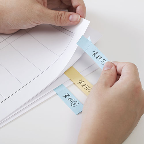 紙を挟み込んで付箋を貼ることができるので、インデックスとして使用することもできます。