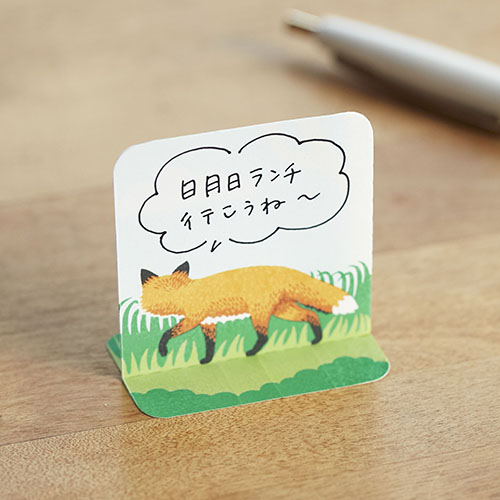 動物の正面と後ろ姿が描かれており、ミシン目に沿って折ると目を引くデザインの付箋になります。裏面に追加の一言を添える使い方もおすすめです。