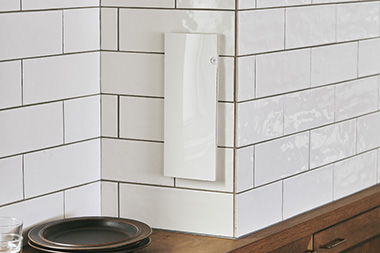 本体背面の吸盤によって、冷蔵庫の扉や玄関のドアなどにファイルを貼り付けて使用することができます。吸盤式なので、ガラス扉の冷蔵庫やキッチンのタイル壁など、マグネットの付かない面にも貼り付けることが可能です。また、ファイルは見開き状態でも表紙を閉じた状態でも貼り付けることが可能で、閉じた表紙はホワイトボードとしても活用できます。