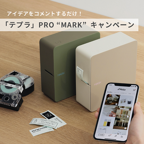 | キャンペーン概要 | 『おうち時間を楽しく過ごすアイデア』をコメントしてくれた方の中から、5名様に「テプラ」PRO "MARK"をプレゼントします。 |