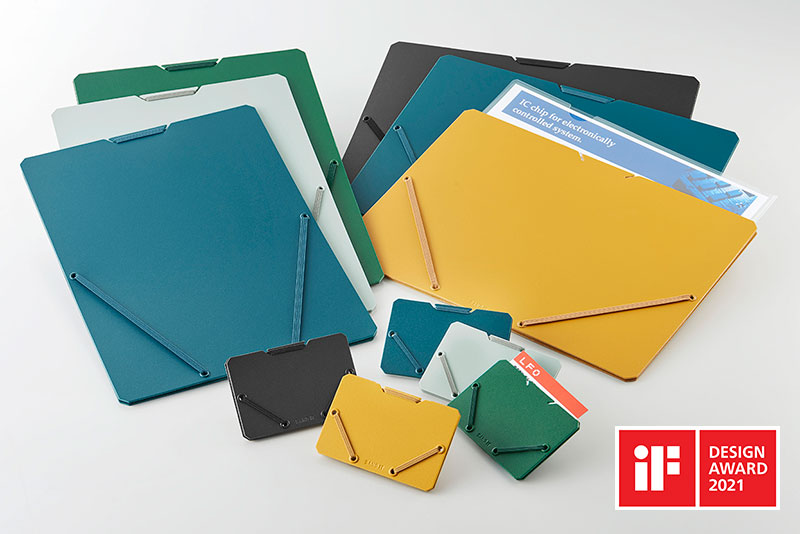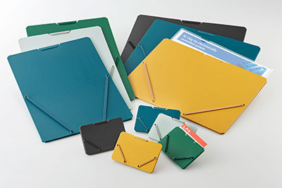 ゴムの伸縮で最適な厚さになるドキュメントホルダー、カードホルダー「SAND IT(サンドイット)」