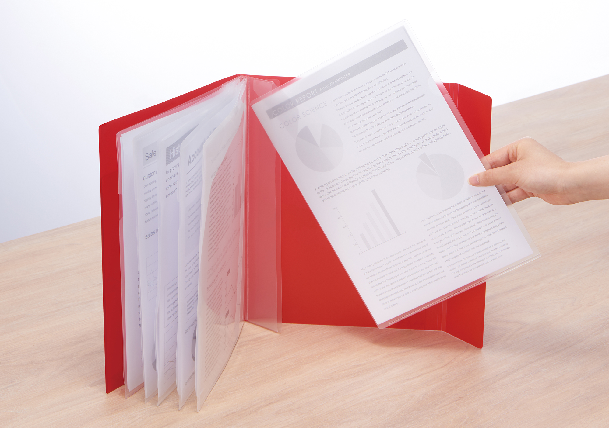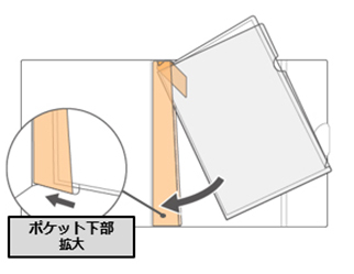 クリアーホルダーの開口部を塞がないため、収納した状態でも書類の閲覧や出し入れがスムーズです。