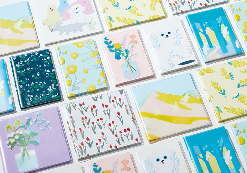 ラインアップは、1日1ページの記録がしやすい「コミックサイズ」と、書く量や目的に合わせ自由にページを分割しやすい「スクエアサイズ」の2サイズ展開です。カバーデザインは、HITOTOKIシリーズで人気の高いモチーフを中心とした、華やかなデザインで各サイズ6種類づつ合計12種類ご用意しています。