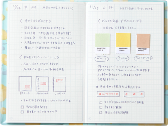 「HITOTOKI NOTE」は、日々の記録を手軽に、そして無理なく自分のペースで続けられるように考え開発されたノートです。手帳のようなドット方眼の罫線と、ノートのような空白の日付欄が特長で、日付に縛られず書きたい時に、書きたい分だけ、使うことができます。また、1冊を無駄なく使い切りできるよう、ページ数や製本の方法にもこだわりました。