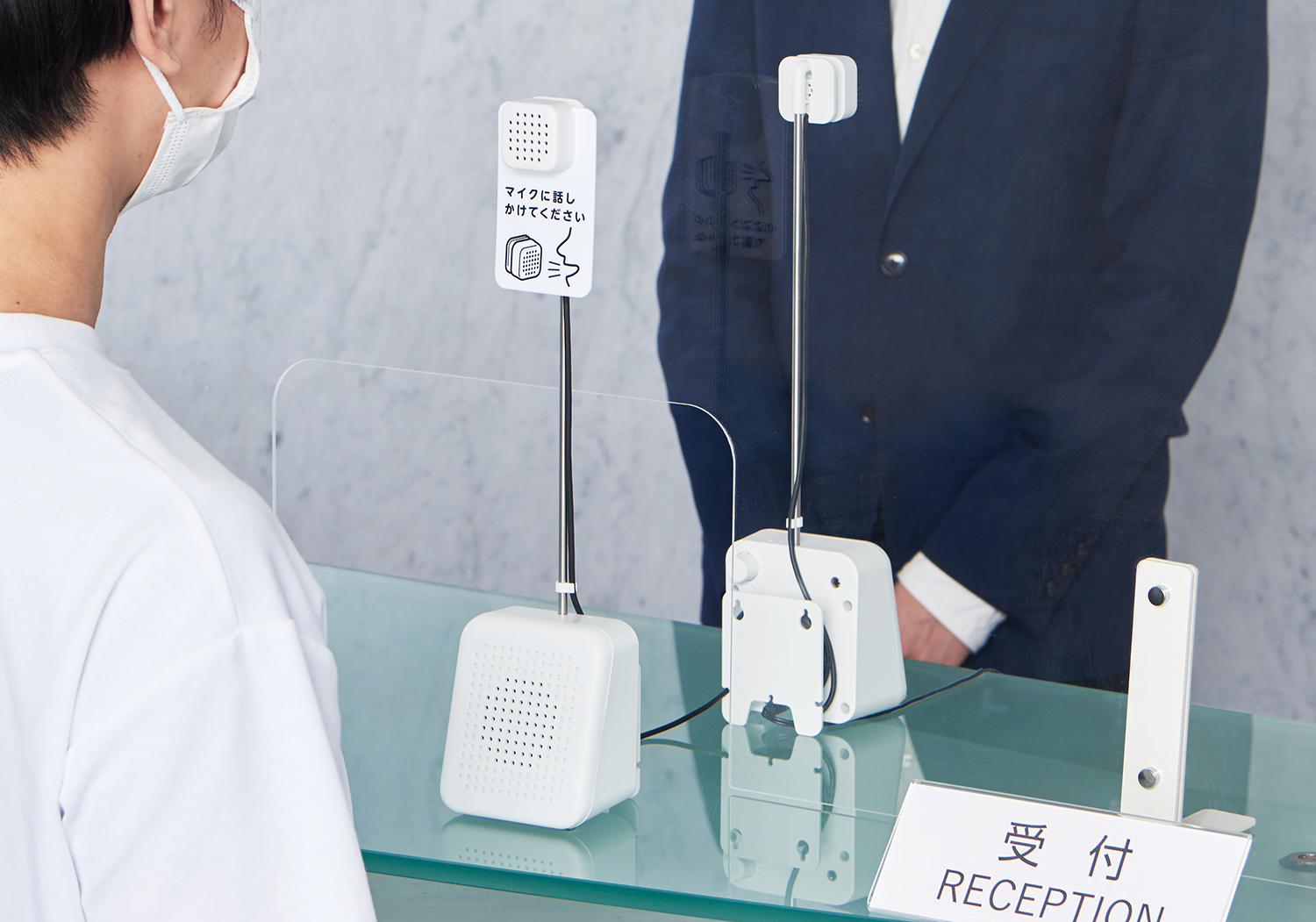 新型コロナウイルス感染対策で、マスク着用、消毒用アルコールの設置に加え、窓口業務だけでなくレジ前やオフィス内、飲食店など様々な環境で飛沫防止用に透明のパーティションが設置されるようになりました。パーティション越しの対話はお互いの声が届きにくく、更にマスクを着用していると、口元も見えずコミュニケーションがスムーズにいきません。