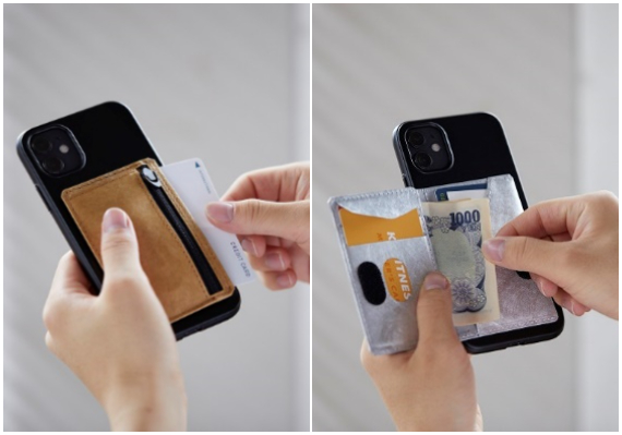 - 硬貨を入れられるチャック付きのポケットとカードケースが一体となった、スマートフォンに取り付けるコンパクトな財布です。現金やカードをかさばらずにスマートフォンと一緒に持ち運べ、キャッシュレス決済も現金・カード決済もこれ1つで対応できます。