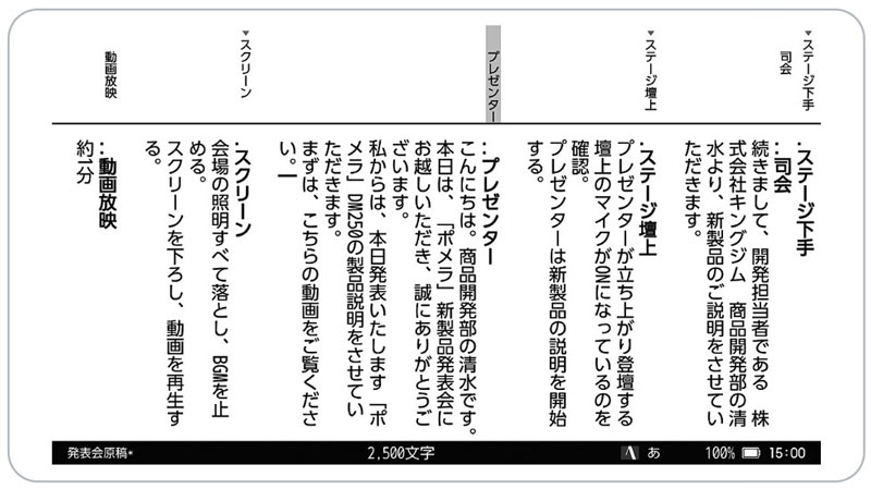 今回発売する「ポメラ」DM250は、従来機(DM200)のテキスト入力のしやすさはそのままに、お客様からの要望を反映してより使いやすさを追求した新モデルです。バッテリーの容量を増加したことにより、フル充電で約24 時間の使用時間(従来機は約18時間)を実現しました。また、USB Type-C に対応し、充電確認用LED も新たに搭載するなど、ハードウェア面での使いやすさも向上しています。ソフトウェア面でも「ポメラ」向けに最適化した日本語入力システム「ATOK※for pomera[Professional]」をさらに強化し、校正支援機能の追加、脚本や台本の作成に適したシナリオモードも追加など、様々な機能のアップデートを行いました。