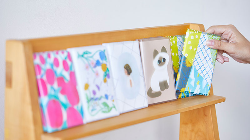 今回新たに加わる「パスポートサイズ」は、システム手帳で人気のM6サイズをヒントに設計された、小さめのサイズ感が特長です。少しのシールとひと言を添えれば簡単にデコレーションが完成するので、気負わず使えて持ち運びにも便利です。カバーデザインは、お花や女の子、ネコなど、持っているだけで気持ちが上がるようなデザインをとりそろえました。「コミックサイズ」、「スクエアサイズ」は各サイズ5種類ずつ、「パスポートサイズ」は6種類、合計16種類の新ラインアップを追加します。