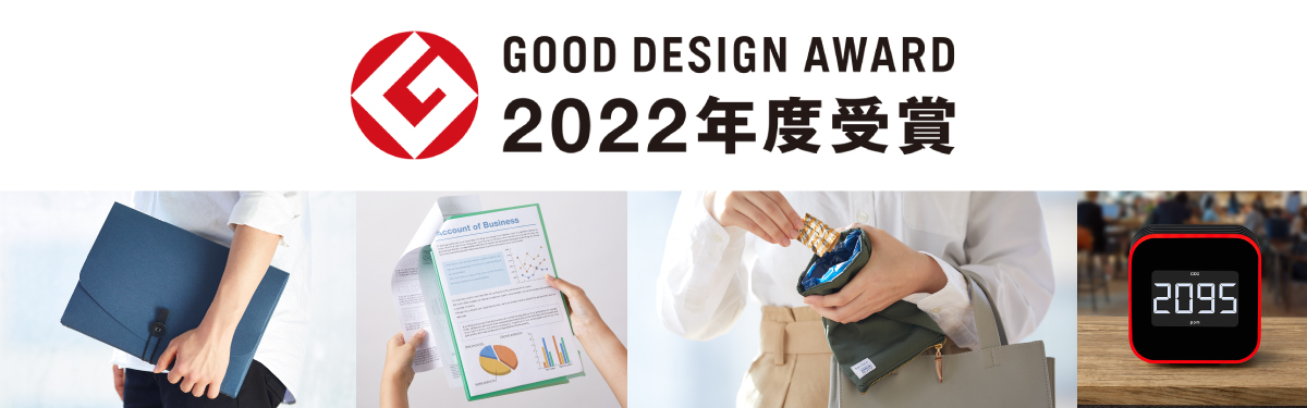 株式会社キングジム(本社:東京都千代田区 代表取締役社長:宮本 彰)は、公益財団法人 日本デザイン振興会が主催する「2022年度グッドデザイン賞」を、「ロッツ」フルオープンケース、「ホルポ」ごみ箱ポーチ、「ナナメクリファイル」、「換気を促すCO2モニター」の合計4製品で受賞いたしました。