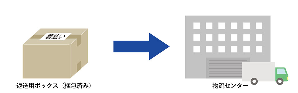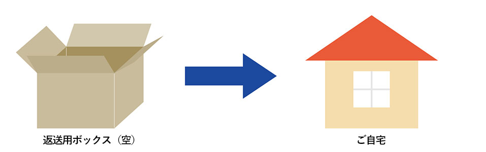 - 2.お申し込みから約10日程度で、フォームにご記載いただいた住所宛に、返送用ボックスや着払い伝票をお届けいたします。