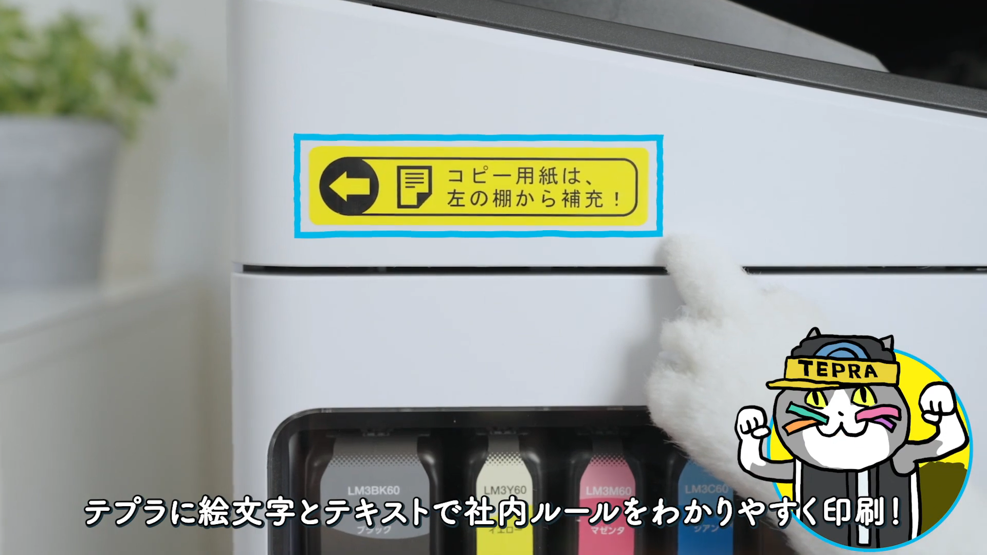 この度のCMでは、「ヨシ!」と指差確認をして仕事をするが、なぜかトラブルを起こしてしまいがちな『仕事猫』が「製造業」「医療・福祉」「オフィス」それぞれの職場で、「テプラ」を賢く使うことのできるオリジナルキャラクター『テプラ猫』のアドバイスを基にトラブルを解決していきます。