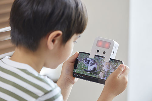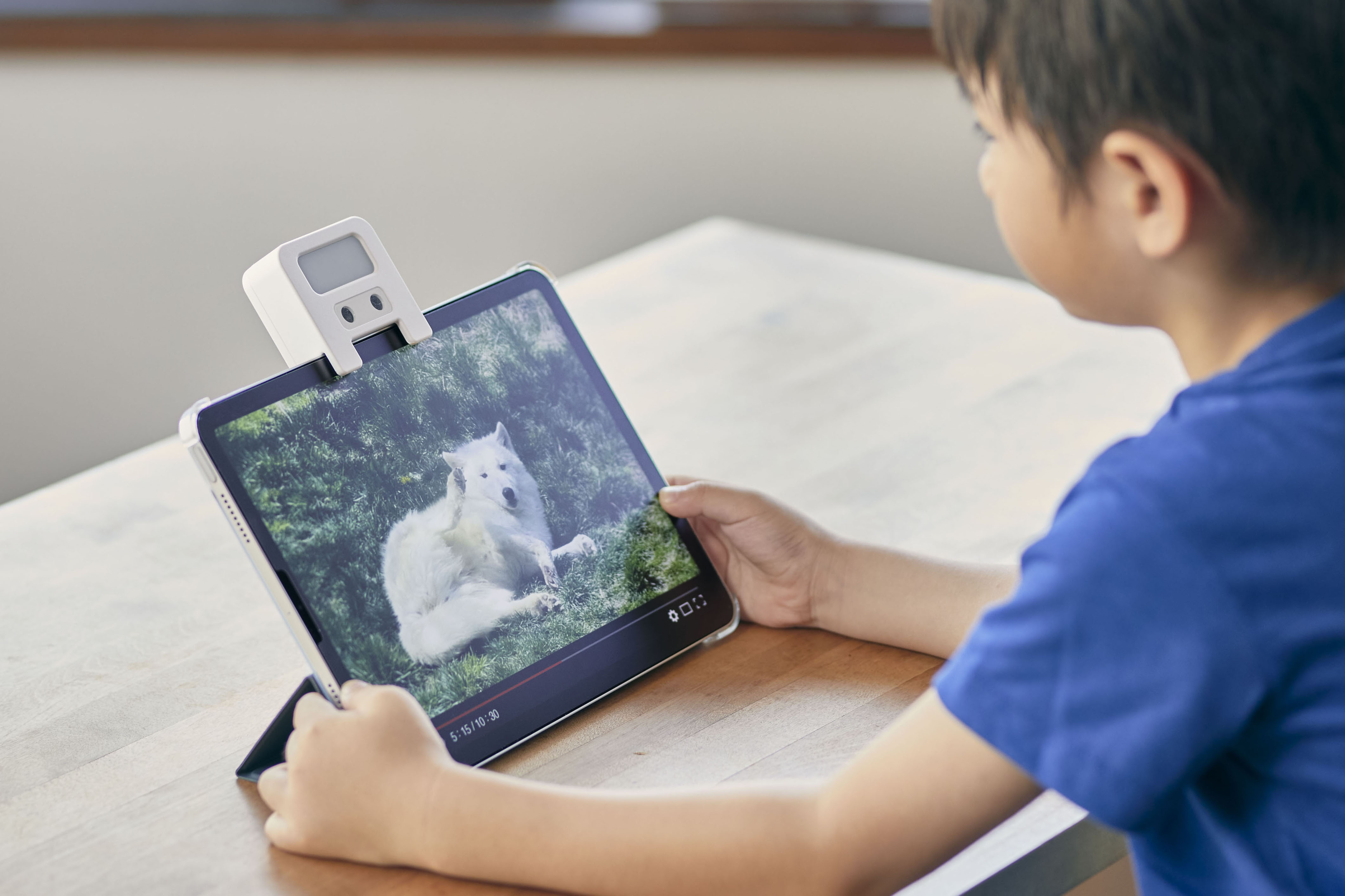 近年、タブレットなどのデジタルデバイスの普及により、画面を近い距離で見ることによる"子どもの近視"が深刻な社会問題となっています※1。子どもは集中するとどんどん画面に顔が近づいてしまいがちです。保護者は「離れて見ようね」と何度も注意をしなければならず、一方で子どもはどのくらい離れればいいかがわからないため、お互いに嫌な気持ちになるちょっとした苦労がありました。この背景に着目し、子ども自身がデジタルデバイスと顔との距離を適切にとれる近視対策ライト「めまもりん」を発売します。