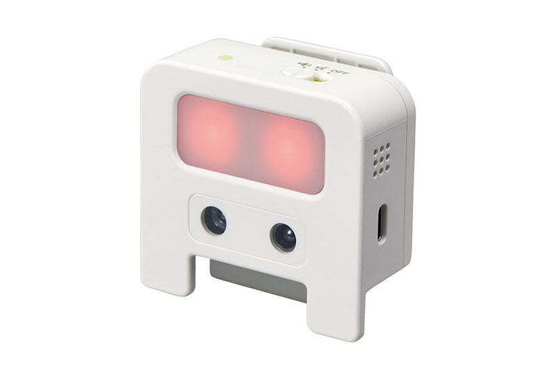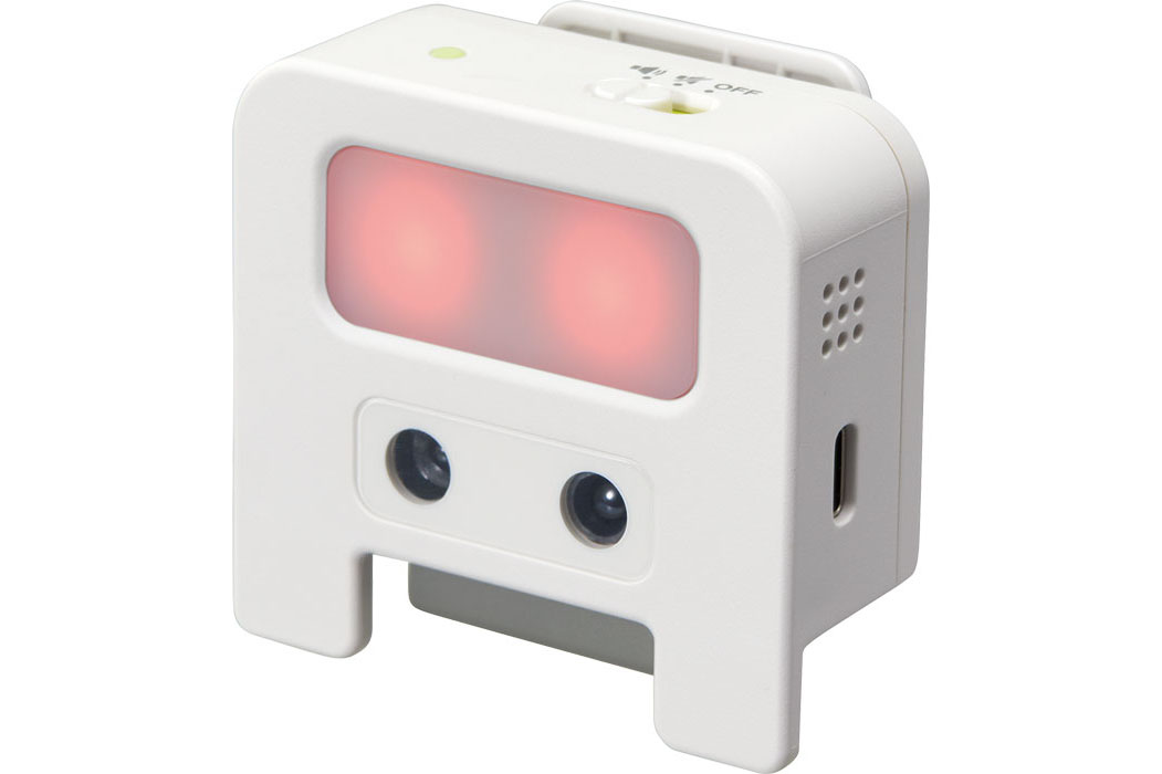 近視対策ライト「めまもりん」は、タブレットなどの画面に顔が近づくとライトとブザーで教えてくれる近視対策をサポートする製品です。顔が画面から約30cm※2以内に近づくと赤外線測距センサーが感知し、LEDライトの点滅とブザー音でお知らせします。ブザー音はON/OFFの切替えが可能で、消音でも使用できます。