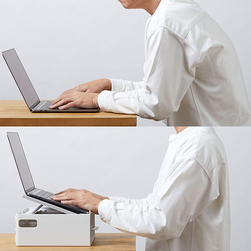 - 収納ボックスとノートPCスタンドの2wayで使える