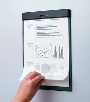 これまでの一般的なクリップボードは、挟んだ書類を裏側にめくった状態で固定できない、上部にしか綴じ具がないため紙がめくれたり折れたりする、などの不満がありました。この度発売する「マグフラップ」は、2つのフラップを設けることでこれらの不満を解消する、機能性クリップボードです。