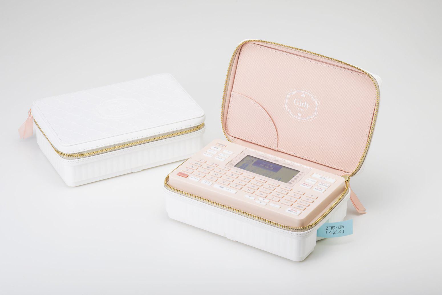 ガーリー「テプラ」は2013年2月の発売以来、かわいらしい本体デザインや、フォント・絵文字を搭載するなど、従来の事務用品としてのイメージを覆した、女性のための「テプラ」として好評をいただいています。今回発売するラベルライター「テプラ」PRO SR-GL2は本体デザインをさらに洗練させ、モロッカン調のエンボス加工を施した縫製カバーを採用し、コスメポーチのようにファスナーを開いて使うデザインが特長です。人気のフォントや絵文字、フレーム等にも新デザインを追加し、"ひとてま"かけて暮らしを楽しみたい方に向けた新機種です。
