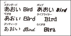 ※ 「タイプライター」と「らくがき」は、英数専用フォントなので、英数文字以外は「スタンダード」で印刷されます。