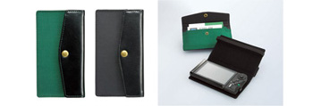 ケースに装着したまま使える一体型。名刺の収納も可能。