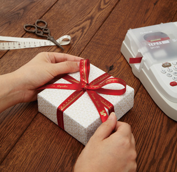 これまでは、プレゼント用の箱などに、どのくらいの長さの りぼん を使用すれば、きれいにラッピングできるかが見当つけづらいことがありました。今回発売する「りぼんキット」のコットンメジャーを使用すれば、りぼん を印刷する前に、対象物に仮巻きをするだけで簡単に必要な長さを確認することが可能です。印刷した りぼん は、手芸用ハサミできれいに裁断することができます。