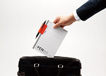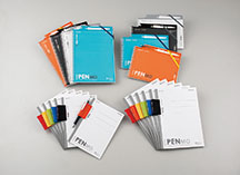 「PENMO(ペンモ)」は、ノートに何か書き込もうとした際に、ペンの持ち合わせがなく、書きたい時に書けずに困ったというニーズに着目して開発したノートです。