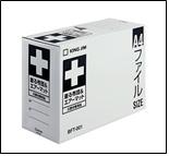 A4 ファイルサイズのボックスに収納されているので、書庫や引き出しなどオフィスで効率的に保管できます。