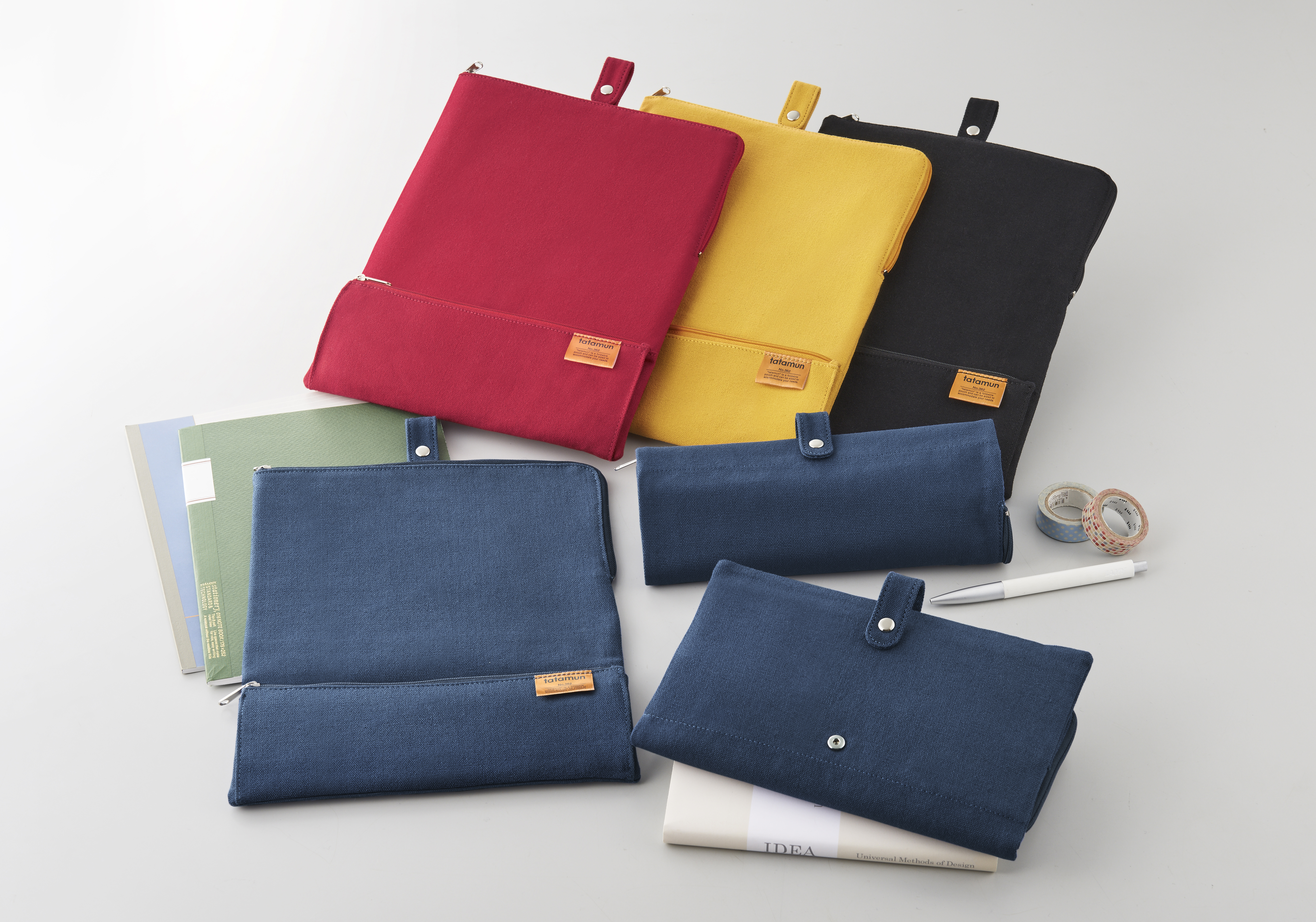 「タタムン」はこのような背景に着目して開発した収納ポーチで、収納物の大きさに応じて、B5サイズからペンケース程度のサイズまで、3種類のサイズに折りたためる設計になっています。