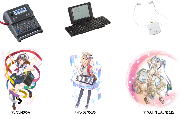 当社のラベルライター「テプラ」、デジタルメモ「ポメラ」、「デジタル耳せん」が、株式会社番町製作所(株式会社アニプレックス 100%出資子会社)よりリリースされている、スマートフォンアプリゲーム「家電少女」のコラボキャラクターとして登場します。
