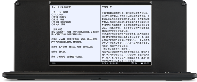文章を縦書きにして編集できるので文学作品の執筆にも適しています。